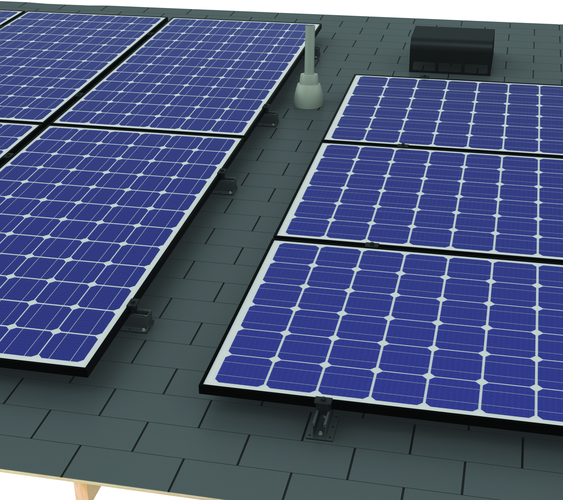 The MiniRail Comp System is a rail-less solution for composition shingle roofs providing low profile design and rapid installation all in one kit.